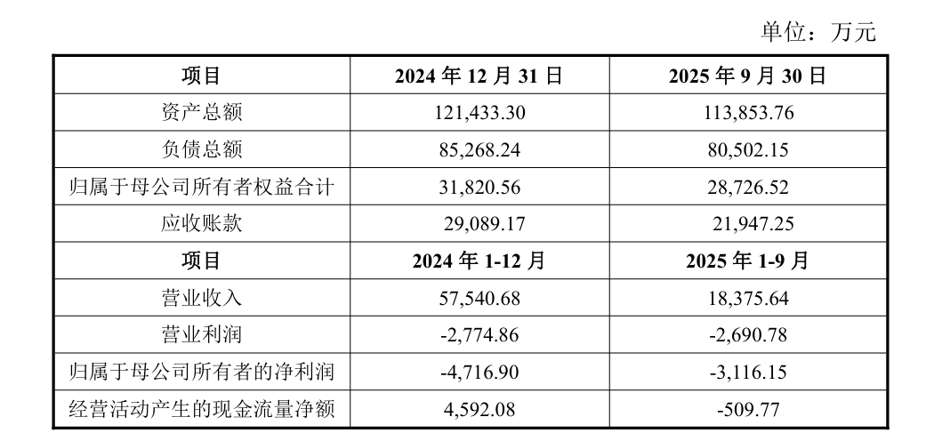 近年来,小崧股份业绩持续下滑。2023年、2024年度及2025年前三季度,该公司分别净亏损691.64万元、2.25亿元、7110.58万元。